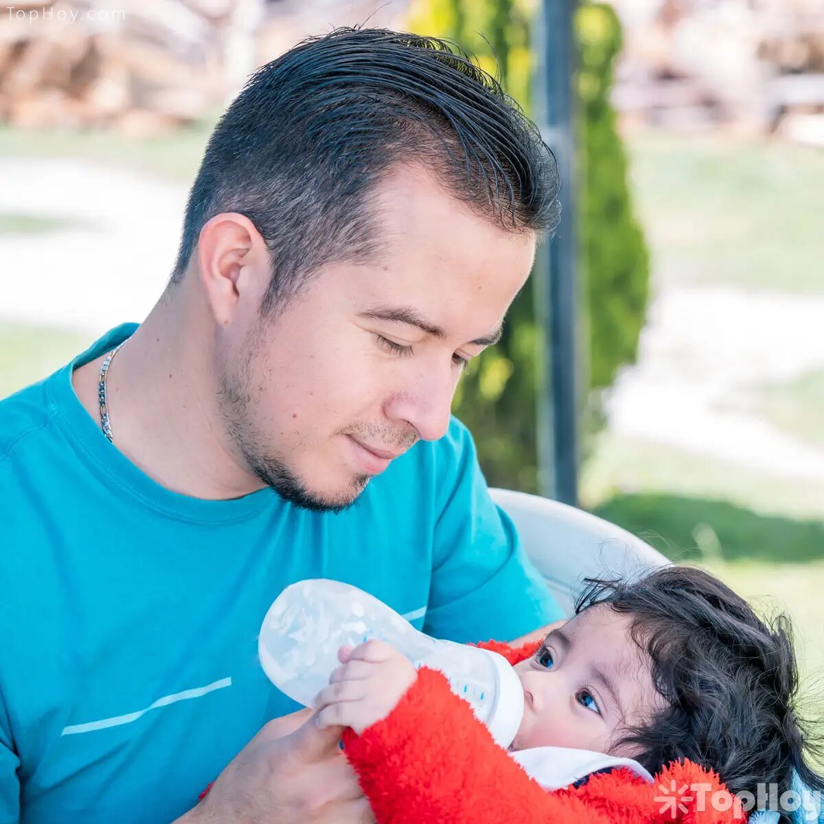 padre dandole leche a un niño